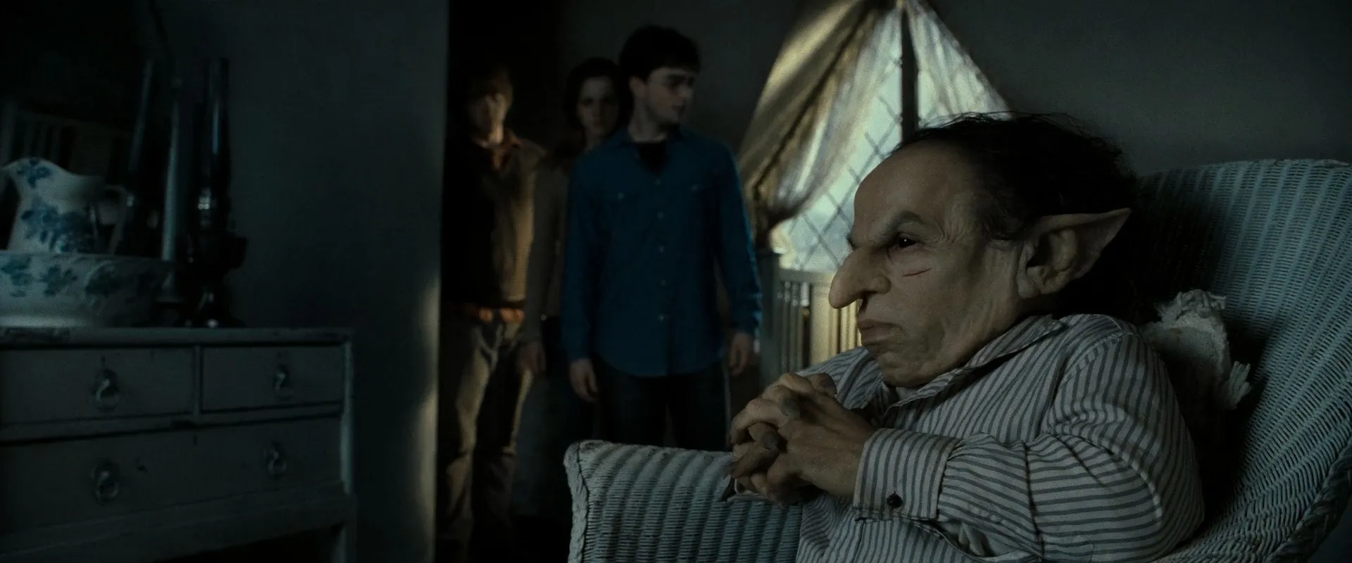 Star Cast: Daniel Radcliffe as Harry Potter, Rupert Grint as Ron Weasley, Emma Watson as Hermione Granger, Ralph Fiennes as Lord Voldemort, Alan Rickman as Severus Snape, Helena Bonham Carter as Bellatrix Lestrange, Maggie Smith as Minerva McGonagall, Michael Gambon as Albus Dumbledore, John Hurt as Ollivander, Tom Felton as Draco Malfoy, Warwick Davis as Griphook / Filius Flitwick, Robbie Coltrane as Rubeus Hagrid, Jason Isaacs as Lucius Malfoy, Kelly Macdonald as Helena Ravenclaw, Gary Oldman as Sirius Black, David Thewlis as Remus Lupin, David Bradley as Argus Filch, Ciarán Hinds as Aberforth Dumbledore, Gemma Jones as Poppy Pomfrey, Dave Legeno as Fenrir Greyback, Miriam Margolyes as Pomona Sprout, Helen McCrory as Narcissa Malfoy, Nick Moran as Scabior, James Phelps as Fred Weasley, Oliver Phelps as George Weasley, Clémence Poésy as Fleur Delacour, Natalia Tena as Nymphadora Tonks, Julie Walters as Molly Weasley, Mark Williams as Arthur Weasley, Bonnie Wright as Ginny Weasley, Evanna Lynch as Luna Lovegood, Domhnall Gleeson as Bill Weasley, Graham Duff as Death Eater, Anthony Allgood as Gringotts Guard, Rusty Goffe as Aged Gringotts Goblin, Jon Key as Bogrod, Ian Peck as Hogsmeade Death Eater, Benn Northover as Hogsmeade Death Eater, Hebe Beardsall as Ariana Dumbledore, Matthew Lewis as Neville Longbottom, Devon Murray as Seamus Finnigan, Jessie Cave as Lavender Brown, Afshan Azad as Padma Patil, Isabella Laughland as Leanne, Anna Shaffer as Romilda Vane, Georgina Leonidas as Katie Bell, Freddie Stroma as Cormac McLaggen, Alfred Enoch as Dean Thomas, Katie Leung as Cho Chang, William Melling as Nigel Wolpert, Sian Grace Phillips as Screaming Girl, Ralph Ineson as Amycus Carrow, Suzie Toase as Alecto Carrow, Jim Broadbent as Horace Slughorn, Scarlett Hefner as Pansy Parkinson, Josh Herdman as Gregory Goyle, Louis Cordice as Blaise Zabini, Amber Evans as Twin Girl 1, Ruby Evans as Twin Girl 2, George Harris as Kingsley Shacklebolt, Chris Rankin as Percy Weasley, Guy Henry as Pius Thicknesse, Phil Wright as Giant, Gary Sayer as Giant, Tony Adkins as Giant, Penelope McGhie as Death Eater, Emma Thompson as Sybill Trelawney, Ellie Darcey-Alden as Young Lily Potter, Ariella Paradise as Young Petunia Dursley, Benedict Clarke as Young Severus Snape, Leslie Phillips as The Sorting Hat (voice), Alfie McIlwain as Young James Potter, Rohan Gotobed as Young Sirius Black, Geraldine Somerville as Lily Potter, Adrian Rawlins as James Potter, Toby Papworth as Baby Harry Potter, Timothy Spall as Peter Pettigrew, Peter G. Reed as Death Eater, Judith Sharp as Death Eater, Emil Hostina as Death Eater, Bob Yves Van Hellenberg Hubar as Death Eater, Granville Saxton as Death Eater, Tony Kirwood as Death Eater, Ashley McGuire as Death Eater, Arthur Bowen as Albus Severus Potter (19 Years Later), Daphne de Beistegui as Lily Luna Potter (19 Years Later), Will Dunn as James Sirius Potter (19 Years Later), Jade Gordon as Astoria Malfoy (19 Years Later), Bertie Gilbert as Scorpius Malfoy (19 Years Later), Helena Barlow as Rose Weasley (19 Years Later), Ryan Turner as Hugo Weasley (19 Years Later), Paul Bailey as Gryffindor Student (uncredited), Sean Biggerstaff as Oliver Wood (uncredited), Vinnie Clarke as Gryffindor Student (uncredited), David Heyman as Dining Wizard in Painting (uncredited), Charlie Hobbs as Student (uncredited), Luke Newberry as Teddy Lupin (uncredited), Keijo J. Salmela as Gringotts Goblin (uncredited), Pauline Stone as Nurse Wainscott (uncredited), Spencer Wilding as Knight of Hogwarts (uncredited), Harrison Davis as Gringotts Goblin (uncredited), Annabelle Davis as Gringotts Goblin (uncredited)